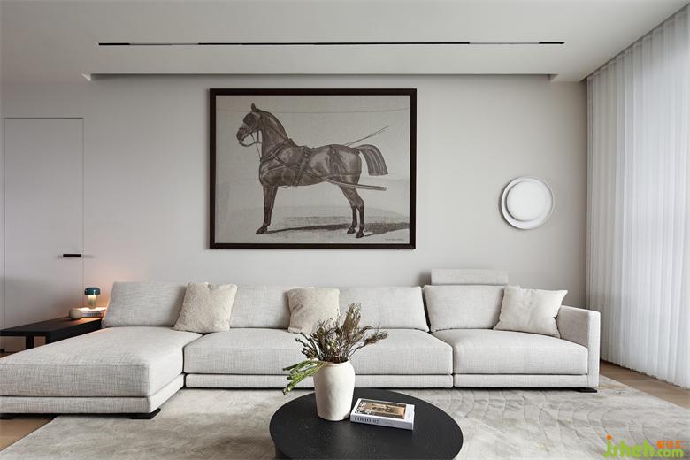 雅致的藝術(shù)掛畫同樣以白色做底,表現(xiàn)居住者品位愛好的同時(shí),讓整個(gè)空間在視覺上擁有更加平衡的秩序感,使整個(gè)空間顯得干凈純粹、雅靜有加。
