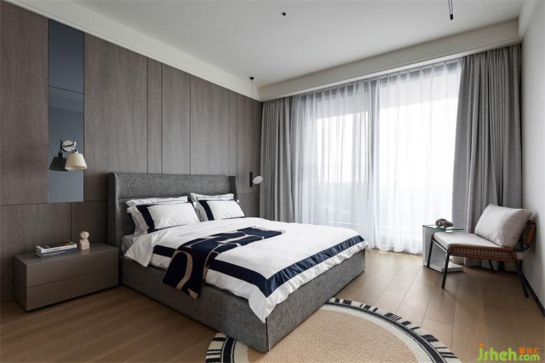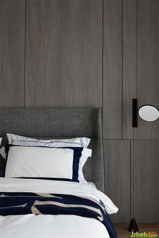 位于二樓的主臥是一個(gè)套房,便于居住者平日的生活起居。麓湖蕓臺(tái)漫躍層裝修設(shè)計(jì)深灰木質(zhì)墻面的裝飾,營(yíng)造出沉靜安穩(wěn)的睡眠環(huán)境,容易讓人安下心來(lái),卸下一整天的疲憊,沉浸在舒適的休憩之中。