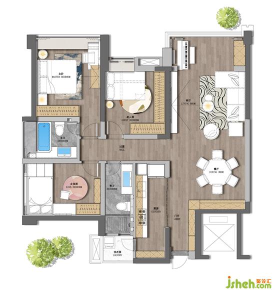 設(shè)計(jì)師根據(jù)業(yè)主的具體訴求,引入暖色調(diào),打造出空間明朗溫情的一面,使之更加生動(dòng)有趣,另一方面,在房間格局上也做了相應(yīng)的優(yōu)化與調(diào)整,合理利用每一寸空間,將小空間在視覺上拉大,讓其看起來更為開敞與通透。