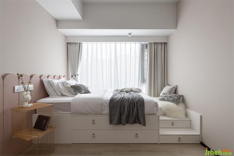 兒童房有效利用飄窗,拓寬了活動空間。家裝設(shè)計與此同時,設(shè)計師還將收納做到極致,除了柜體收納以外,還做了床體的收納,能夠?qū)⒏黝愇锲废?shù)收納齊全。做到了在小空間中最大化的儲物。