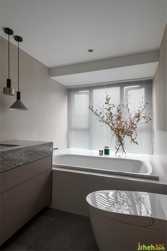主衛(wèi)亦將空間合理利用,靠窗的浴缸設(shè)計,讓居住者在在家中可以盡情享受沐浴的放松,緩解一身的疲憊。家裝設(shè)計瓶盞花藝的布置,清芬盈室,使整個空間清雅有致。