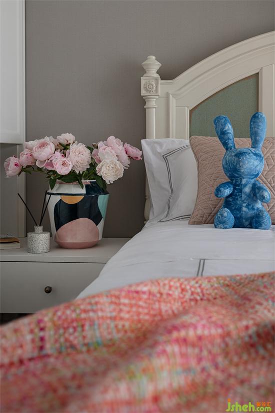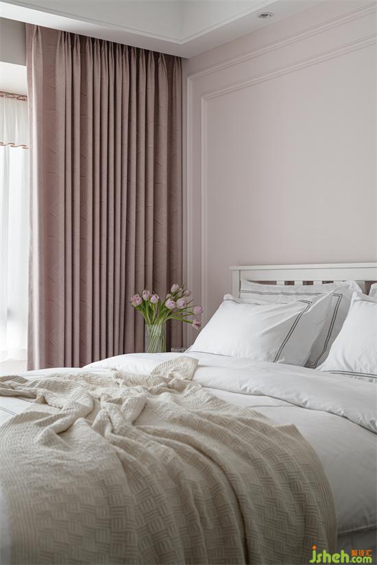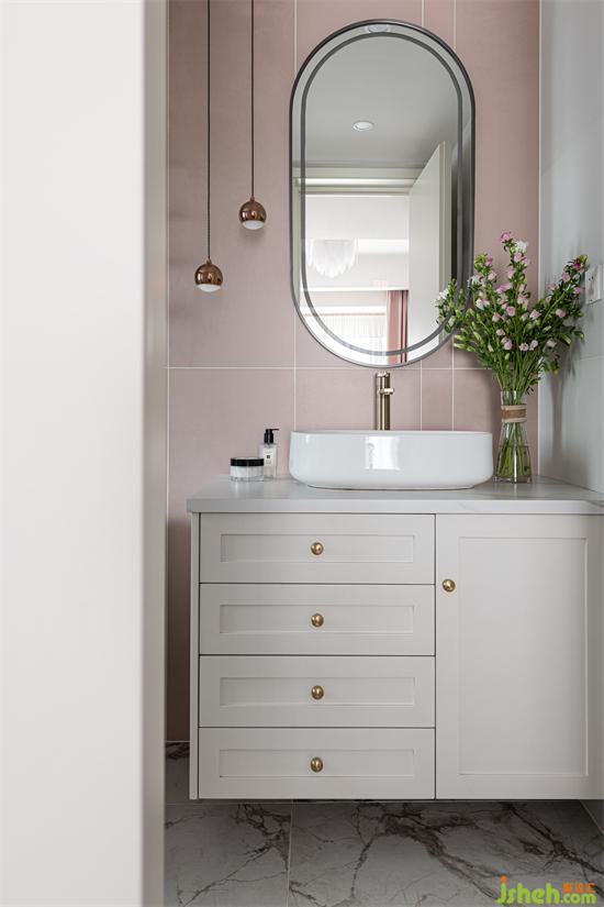 次衛(wèi)霧霾粉的背景墻與金屬質(zhì)感的吊燈相結(jié)合,營(yíng)造出輕奢雅致的效果。同色系花朵的點(diǎn)綴,更是呼應(yīng)了整個(gè)空間關(guān)于“春”的主題。