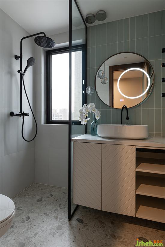 主衛(wèi)以清新的綠色作為主色調(diào),延續(xù)空間的白色背景色,成都遠(yuǎn)洋萬和公館裝修設(shè)計(jì)營(yíng)造出清新自然的氛圍,室內(nèi)擁有著良好的通風(fēng)與采光,家裝設(shè)計(jì)明亮干凈,一塵不染。