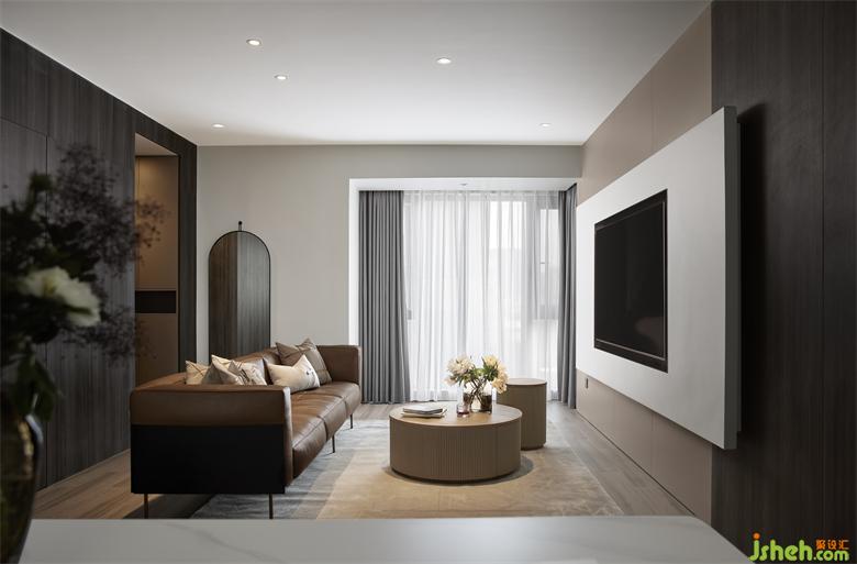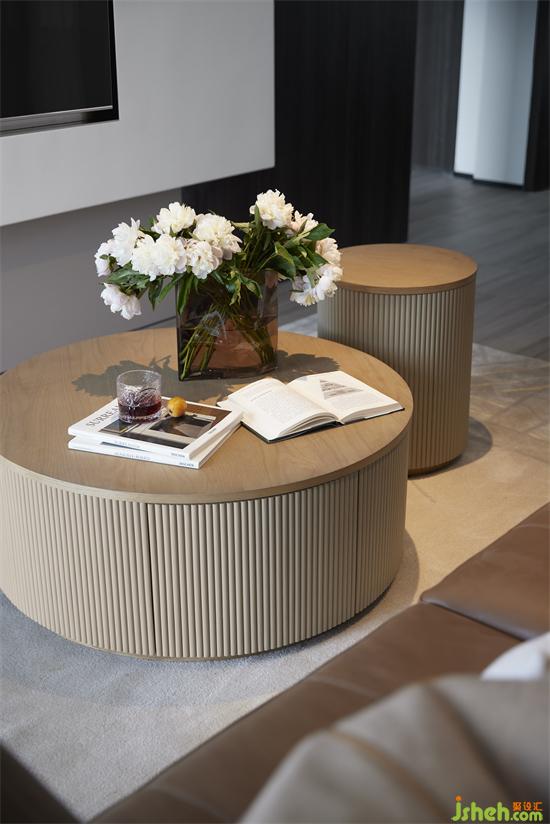地毯選用素凈的顏色,與整個空間的簡約風格相得益彰。質樸厚重的木質圓形茶幾自帶收納功能,成都新綠季節(jié)家裝設計將功能與美學結合得恰到好處。