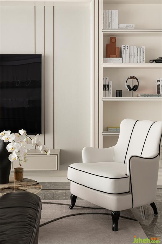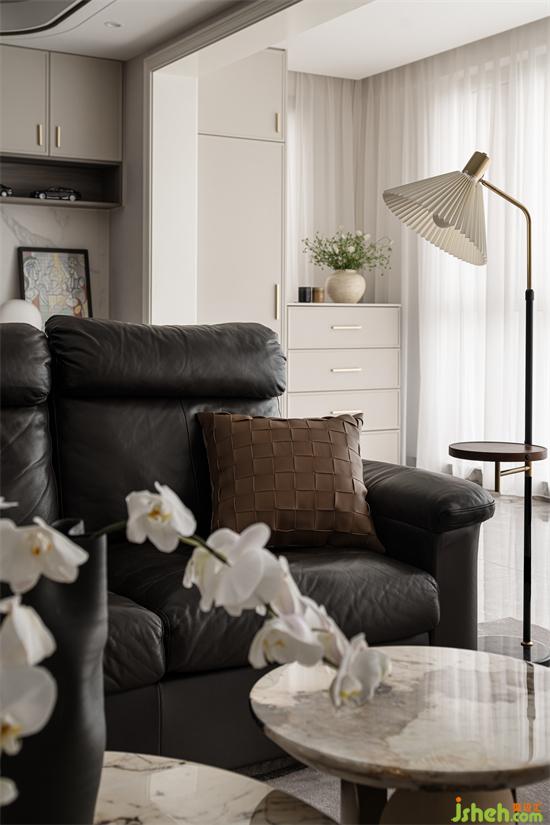 線條圓潤、造型優(yōu)雅的白色沙發(fā)觸感柔和,增加了空間的明亮度與通透度,烘托出輕松、清新的閑逸氣氛。白色的蝴蝶蘭與空間主色調相呼應,飽滿茂盛的花朵,柔媚清雅,為空間增添些許芬芳與活力。