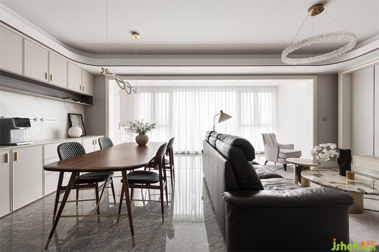 客餐廳相連的布局,開闊明朗,具備良好的通風與采光條件,營造出開放自由的環(huán)境。整體空間以中性色調為主,簡潔又不失溫馨,頗具柔雅氣質。