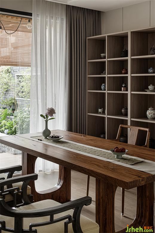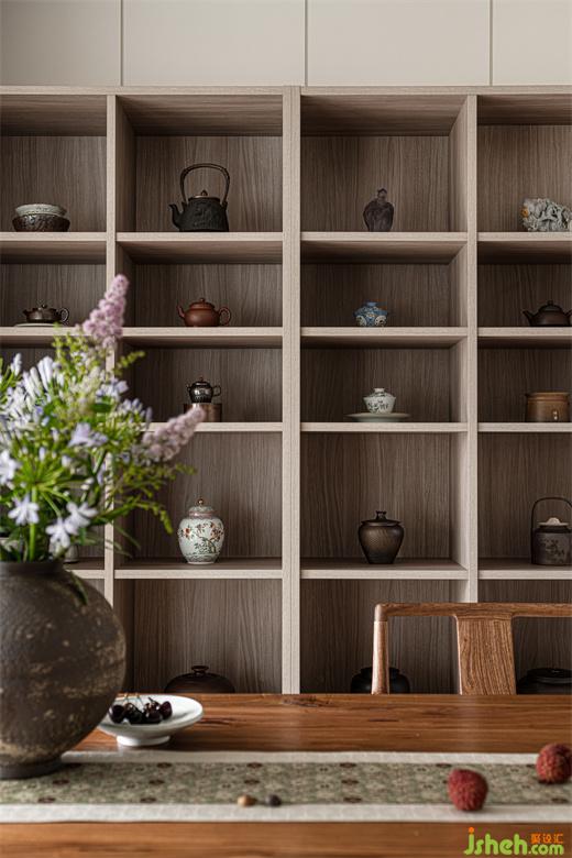 茶室深諳東方美學,木質的自然樸素,瓷器的溫潤細膩,家裝設計都為空間點染著淡淡的禪意。