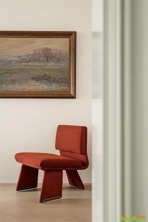 紅色單椅憑借獨特的姿態(tài),注入一抹亮色的同時,讓整個空間變得更加和諧有致。
