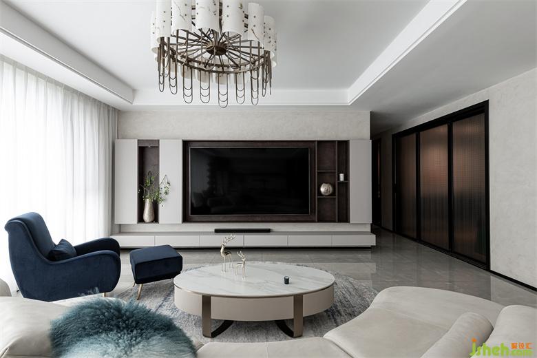 家裝設(shè)計(jì)采用懸浮式電視柜設(shè)計(jì),既滿足一定的收納功能,又彰顯出電視柜輕盈的體態(tài)造型。此外,下方的懸空處,也更方便清潔打掃。