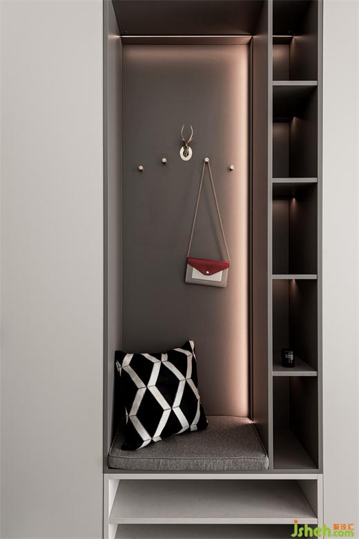 入戶玄關(guān)處巧妙運(yùn)用燈光,通過墻壁氛圍燈暈染的光線來營造空間的明暗層次,家裝設(shè)計(jì)打造一種溫馨的情調(diào)。柜體燈光除了突顯柜子內(nèi)的物品以外,呈現(xiàn)出獨(dú)特的光影效果,在視覺上擴(kuò)展了柜子的空間感。