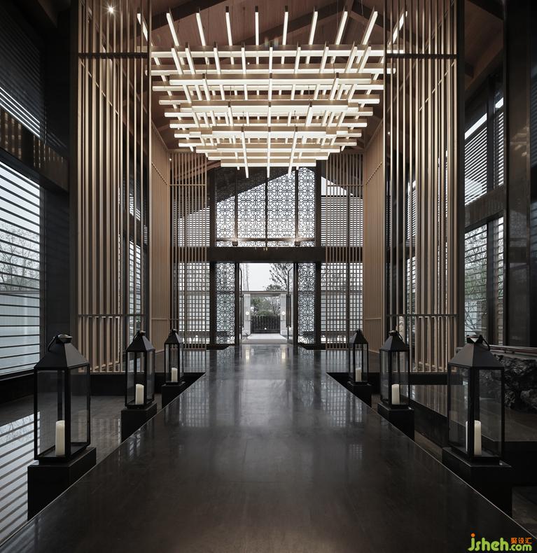 The light installation of roof is based on dougong, which inevitably attracts the attention of the public, this is an artistic device from traditional architectural elements, the illuminant sends out charming light through acrylic.