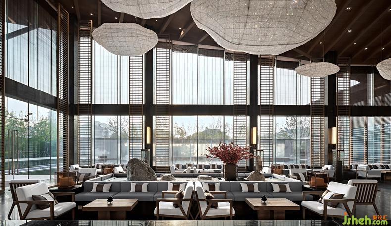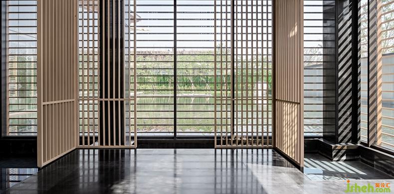 藝術(shù)家從無界的時空痕跡里捕捉靈感,設(shè)計師基于骨子里的東方人文基因,提取淬煉出對中式經(jīng)典美學的贊美與傳承。坡屋頂是中國傳統(tǒng)建筑的代表元素,尚石設(shè)計在這個空間里用建筑的手法打造了室內(nèi)水榭,以人文詩意的精神聯(lián)動室內(nèi)外,為空間賦予了更豐富的文化特性。鋁格柵裝置讓室內(nèi)外依然保持互動,呈現(xiàn)出自然通透的空間感。