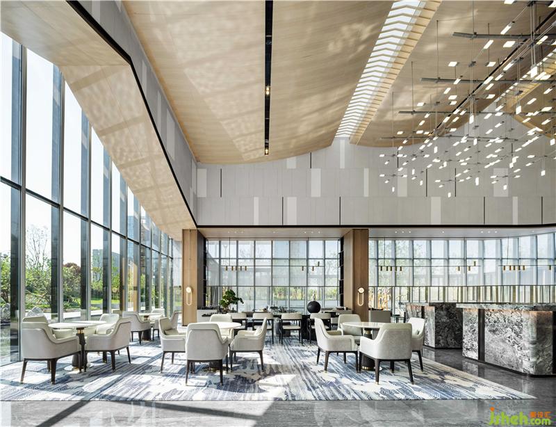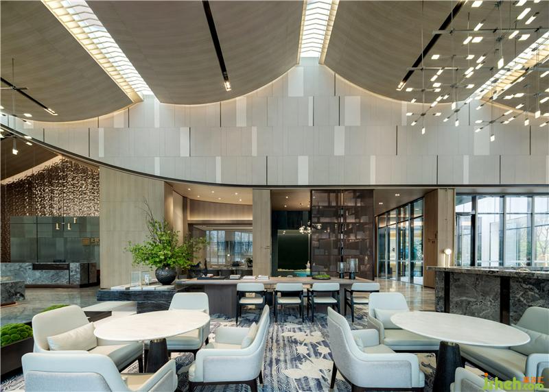 從建筑外觀造型到室內(nèi)空間結(jié)構(gòu),取意于中國(guó)傳統(tǒng)建筑,又經(jīng)現(xiàn)代設(shè)計(jì)之后呈現(xiàn)出柔和洗練的幾何造型。