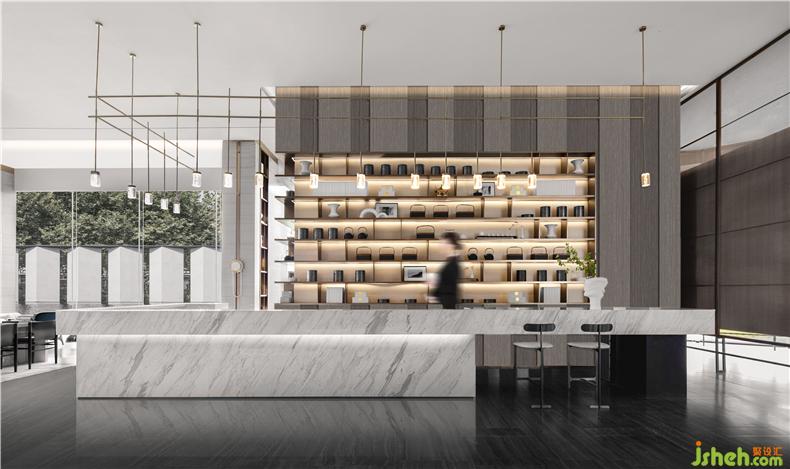 接待臺整體采用白色大理石,擺放的藝術(shù)裝置也頗有考究。室內(nèi)設(shè)計師藝術(shù)裝置《下一刻將會發(fā)生什么》視覺吸引的同時還能有自我思考的空間,增強用戶在空間內(nèi)的情感互動,帶來更多的傳播性和體驗性。