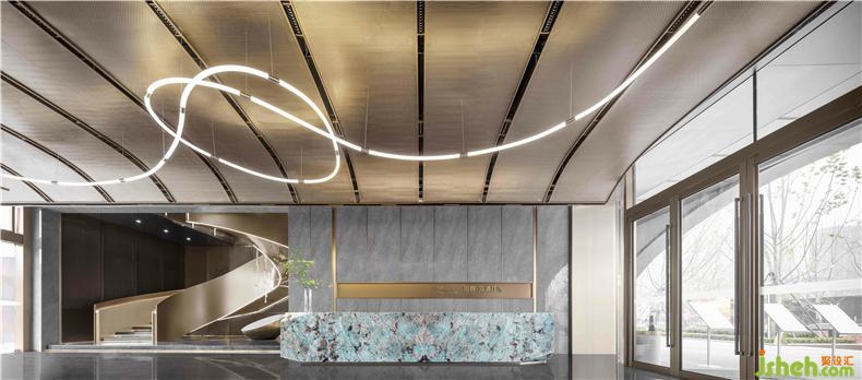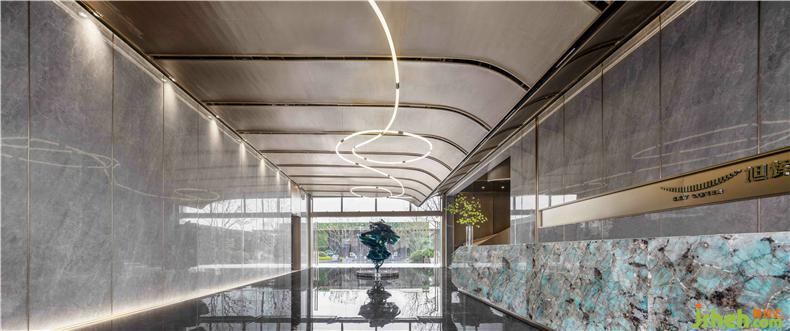 “微笑曲線”是貫穿整個(gè)空間的設(shè)計(jì)語言,是對空間深刻思考與解構(gòu)后的轉(zhuǎn)化。門頭利用建筑弧線的溫柔性體現(xiàn)酒店歸家的儀式感,建筑量體半弧形的天花曲線匯整成和諧的拱形場域,室內(nèi)設(shè)計(jì)師透過大理石與金屬材質(zhì)的散發(fā)著富麗堂皇的高雅,燈光的牽引伴隨著酒店式的奢華,一場讓人賓至如歸的視覺盛宴即刻開始。