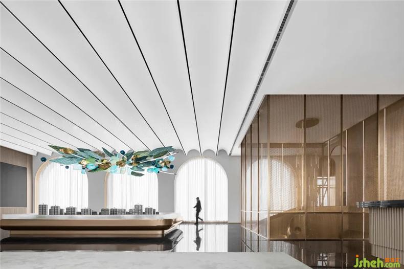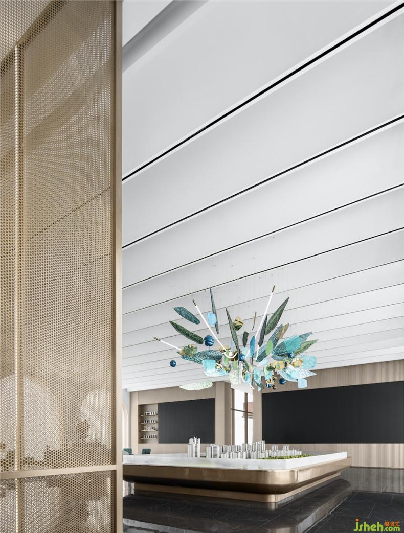 伴隨著光影流動(dòng)進(jìn)入二樓,沙盤區(qū)以通感的手法融匯感官與視覺(jué)的連通,實(shí)驗(yàn)性的重構(gòu)與延續(xù)。設(shè)計(jì)師受到自然世界生命的獨(dú)特性和復(fù)雜性的啟發(fā),運(yùn)用玻璃定制出與空間共生的燈光雕塑,室內(nèi)設(shè)計(jì)師它通過(guò)隨機(jī)性創(chuàng)造和諧的方式,將生命帶入室內(nèi),令空間飽含生命的活力與意志的自由。