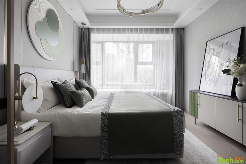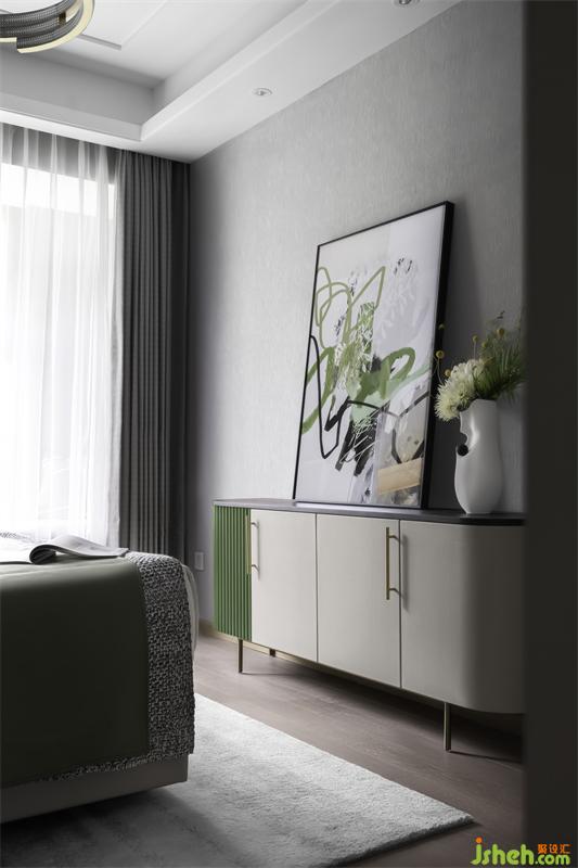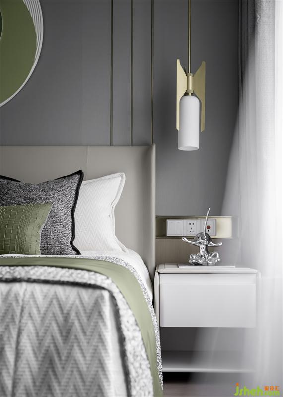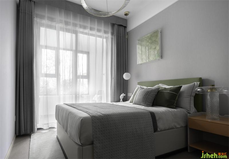 高級(jí)灰的睡眠空間,讓不同飽和度的綠色跳躍其中。