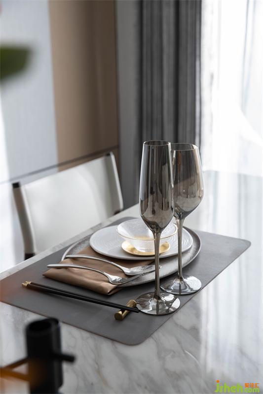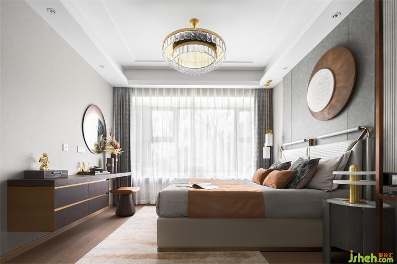 在燈具的選擇上,水晶的溫潤柔化了金屬的冷冽。讓主臥整體軟裝柔中帶剛,簡潔卻不單調(diào)??臻g中色彩與陳設(shè)的平衡得益于材料的互相補(bǔ)足與映襯。