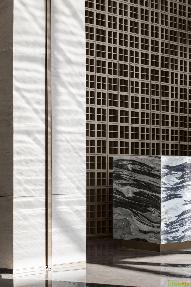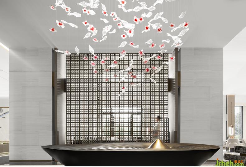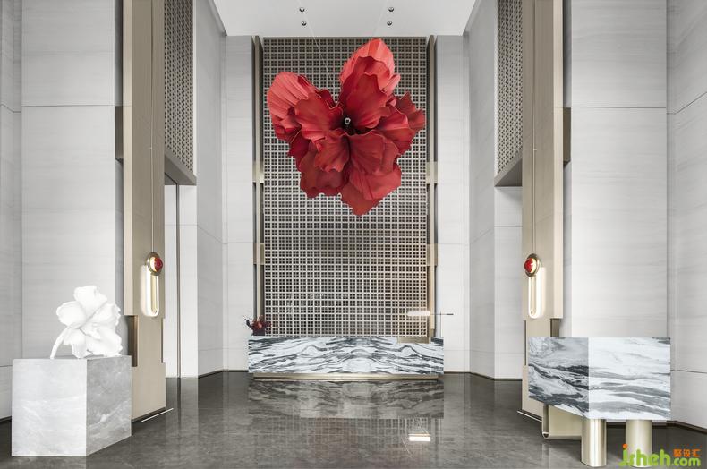 步入前廳,空間線條均衡對稱的排布和莊重的建筑色彩,成就著高度的秩序感;裝修設計風華曠代的天彭牡丹以迥然相異的現(xiàn)代材料呈現(xiàn),不禁讓人直觸內心所向:牡丹開得最盛的時代,何嘗不是我們所向往的最好的時代?