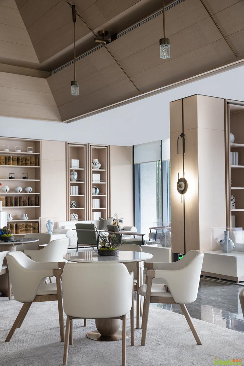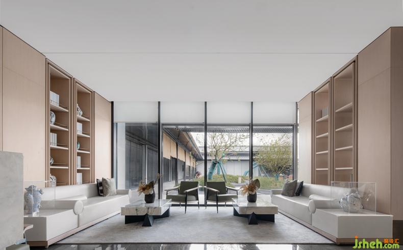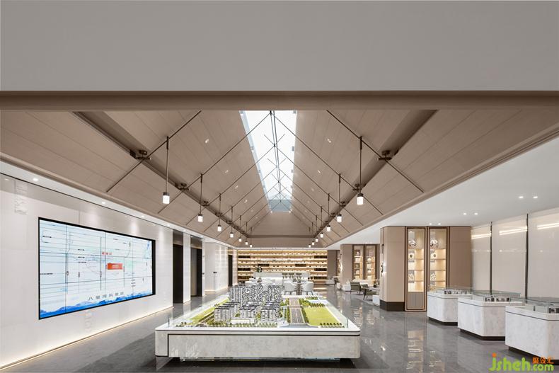 具有宋代建筑木結(jié)構(gòu)藝術(shù)特點的前廳,提取當(dāng)?shù)厍陮W(xué)府“河洲書院”的設(shè)計元素進(jìn)行拆解與重組,售樓處設(shè)計連結(jié)當(dāng)?shù)厝宋幕虻墓缠Q,運用現(xiàn)代的設(shè)計語言重現(xiàn)宋式美學(xué)。