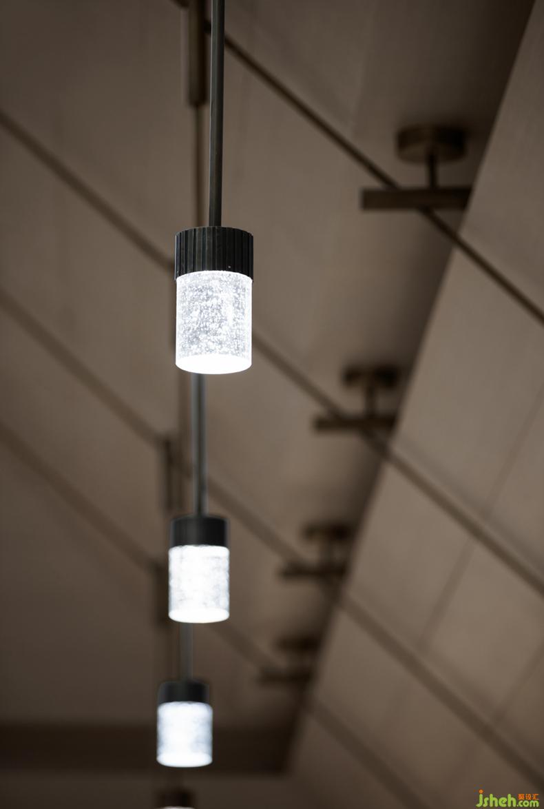 SUNS尚石設(shè)計在吊燈上將這一向往聚焦呈現(xiàn),取松間掛滿枝的實景圖形,運用皎潔的白月光;售樓處設(shè)計自沙盤區(qū)起,逐個點照整個空間,格韻高潔、空靈澄凈。