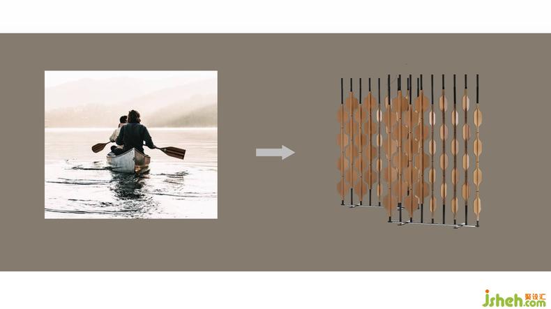 “船槳”組成的屏風(fēng)包裹人體在這個(gè)區(qū)域里的一舉一動(dòng),在開(kāi)放的空間里營(yíng)造相對(duì)通透的私密性。
