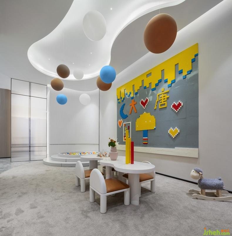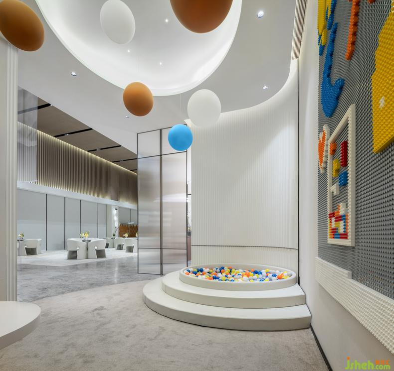 兒童區(qū)同樣為孩子們打造一片“大海”,波波池增添售樓處的可玩性,待孩子們長(zhǎng)大后,室內(nèi)設(shè)計(jì)師再去追逐屬于自己的星辰大海吧。
