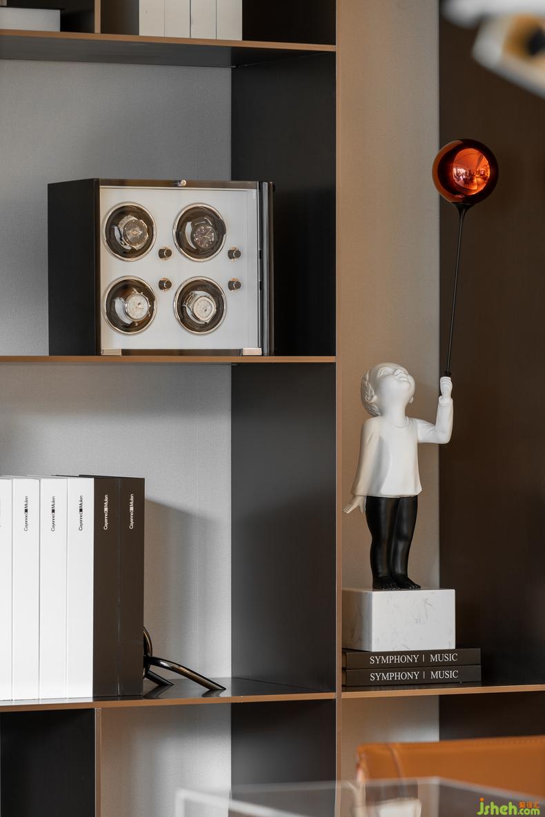 壁柜融合空間整體設(shè)計(jì)風(fēng)格擺放藝術(shù)品,同時(shí)又不失實(shí)用性,將過(guò)往的榮譽(yù)和紀(jì)念一起收藏。