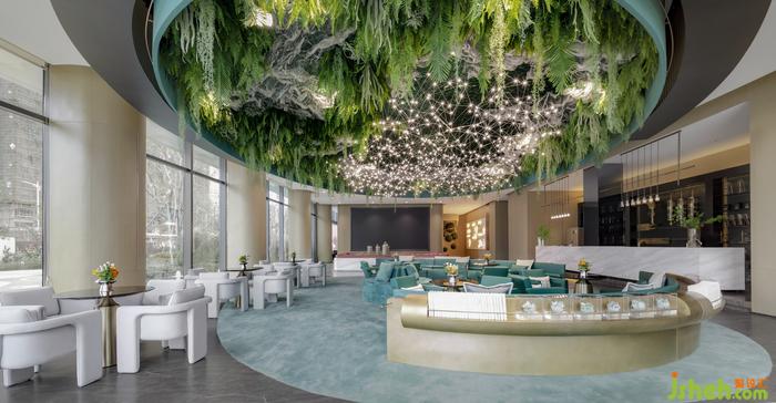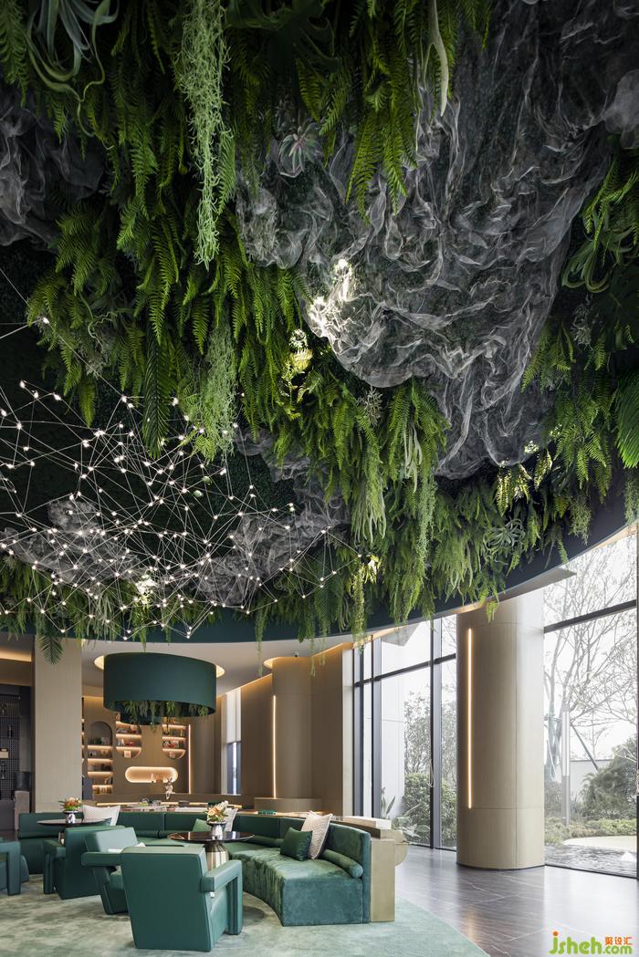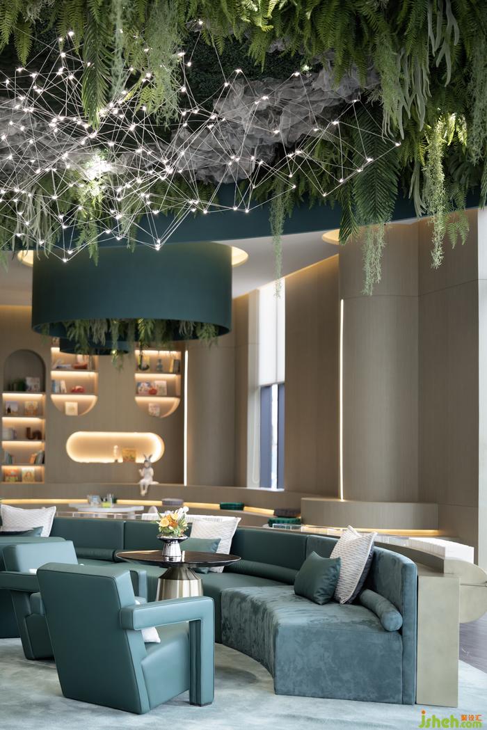 金色絲線交織的光影,串合顆顆輕盈微光,售樓處設(shè)計(jì)如陸棲流螢。散發(fā)出來的粒子氣息,似生態(tài)粒子飛舞和生命體的靈魂微粒:動(dòng)態(tài)而柔軟,在茂盛的詩(shī)庭蔓延出生物之美,讓每一位來訪者享受一場(chǎng)視覺盛宴。