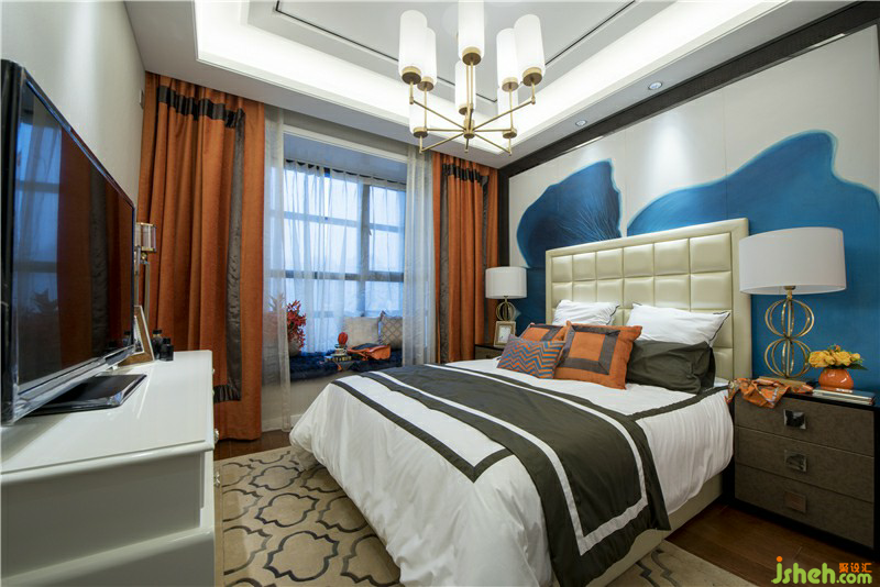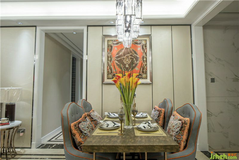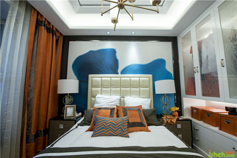 墻面大幅的藝術(shù)畫(huà)布藝的墻面裝飾簡(jiǎn)單不單調(diào)的造型都體現(xiàn)了作為服裝設(shè)計(jì)師的主人獨(dú)特的品位與藝術(shù)修養(yǎng)在暖暖的橙色里幸福滿溢