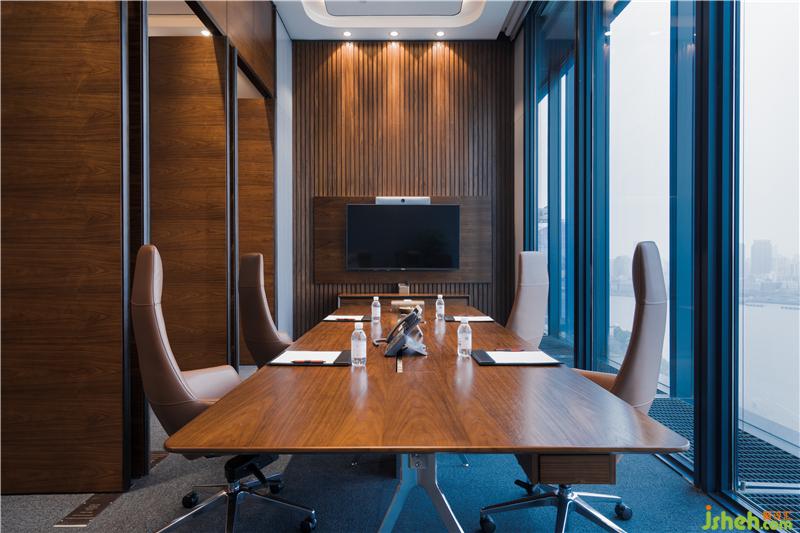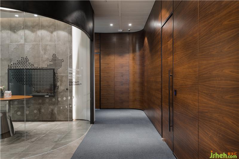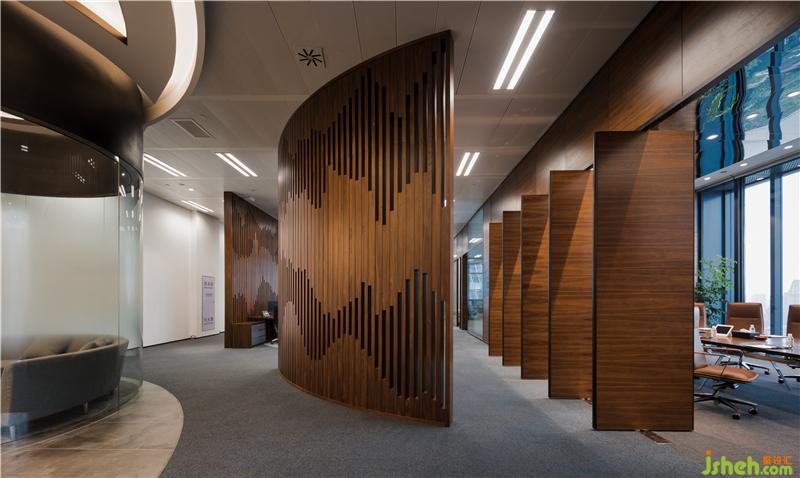 用胡桃木制作的隔斷沿著過道延伸,員工可以借由角度的轉(zhuǎn)換發(fā)現(xiàn)不同視野,進(jìn)一步加強(qiáng)了整個空間的連接和可視性。