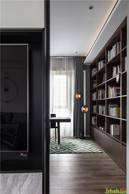 客廳背景墻的一側(cè) 就是獨立開敞的書房