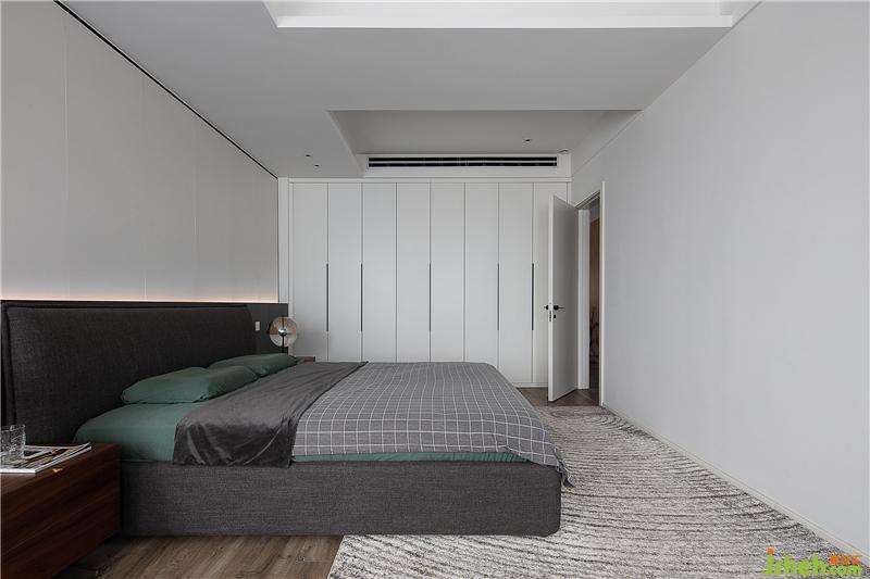 主臥背景墻采用定制墻板 結(jié)合隱藏式燈帶