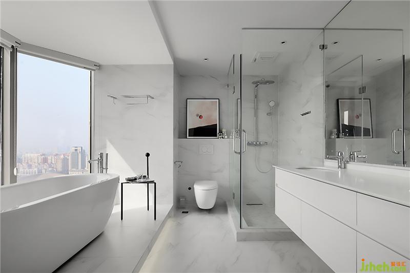 整面落地窗結(jié)合浴缸 這個(gè)純白洗手間是電影大片同款