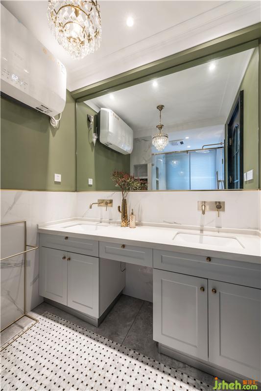 二樓的洗手間同樣實(shí)現(xiàn)了干濕分離,雙人洗手盆和浴缸的使用,都是保證生活舒適感的小細(xì)節(jié)。收納空間也必須要大,雙面六格壁龕加浴室柜,讓這里出現(xiàn)的物品都可以收納有序。