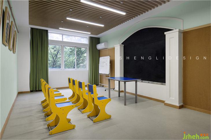 整個(gè)美術(shù)室以明快、清新、活潑的整體風(fēng)格設(shè)計(jì),迎合了少年兒童的心理,滿足孩子天性活潑的活動需求,營造輕松舒適的繪畫環(huán)境,桌椅和周圍的環(huán)境都充滿了童趣。
