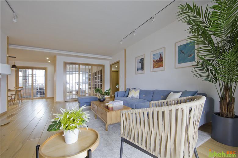 客廳空間方正空間大,布局上大方處理就好了,空間上主要注重軟裝的搭配和顏色的層次。白色墻面在桑拿板木條點綴下有一點靈動的色塊的,讓空間變的有趣味了。