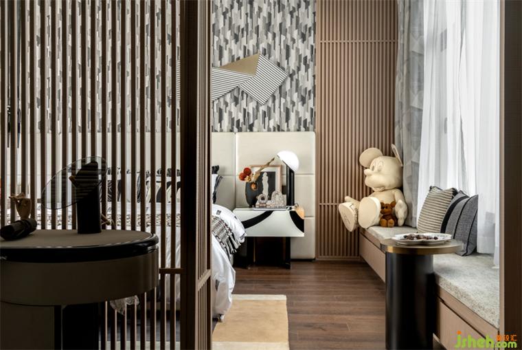 二層的男孩兒房依然以秋日鋪色,增加線條設計與幾何圖形增添想象空間與無數可能性。