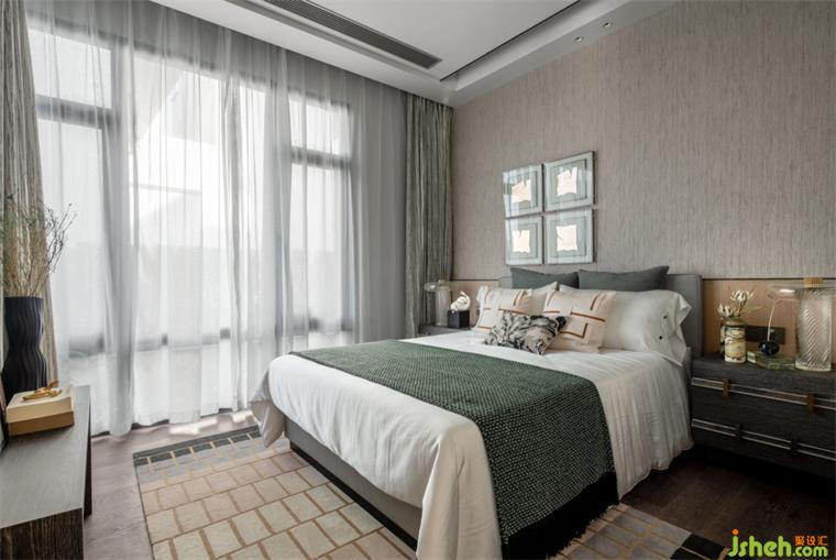 設計不可標簽化,秋日決不想被冠上沉重色彩的標簽。長輩房精心的布置在一層,別墅裝飾其采用大面積的低飽和綠,又如雨天桂林山水,霧氣朦朧里隱隱欣賞那一片綠。