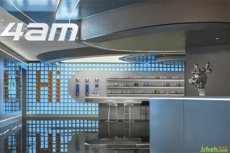 如同體驗(yàn)一場極光降臨,被脈沖銀質(zhì)感的不銹鋼金屬包裹,又被極速的電光藍(lán)分割成多重宇宙。電競俱樂部設(shè)計(jì)銀灰色與藍(lán)色相互牽絆,重構(gòu)科幻感十足的未來體驗(yàn)。