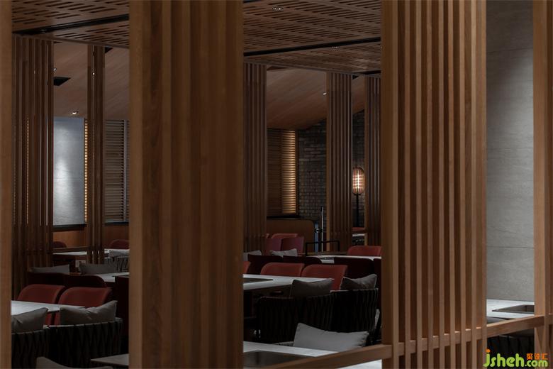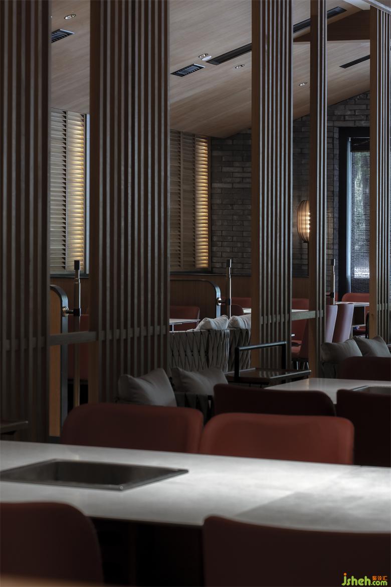 錦城印象成都餐廳設(shè)計(jì)高新店,是集嘉設(shè)計(jì)受委托進(jìn)行品牌升級(jí)改造的第二家錦城印象門店。項(xiàng)目毗鄰高新區(qū)in99商業(yè)綜合體,是錦城印象品牌每日營(yíng)業(yè)額冠軍門店,面積最小、上客率最高。在保證業(yè)態(tài)和高頻效翻臺(tái)率的同時(shí),成都餐廳設(shè)計(jì)師利用園林景觀的設(shè)計(jì)邏輯--「空間越拆越小,空間越隔越大」,在大廳兩側(cè)設(shè)置了木柵隔斷,擴(kuò)大空間視覺效果。
