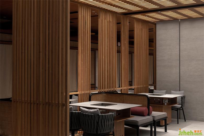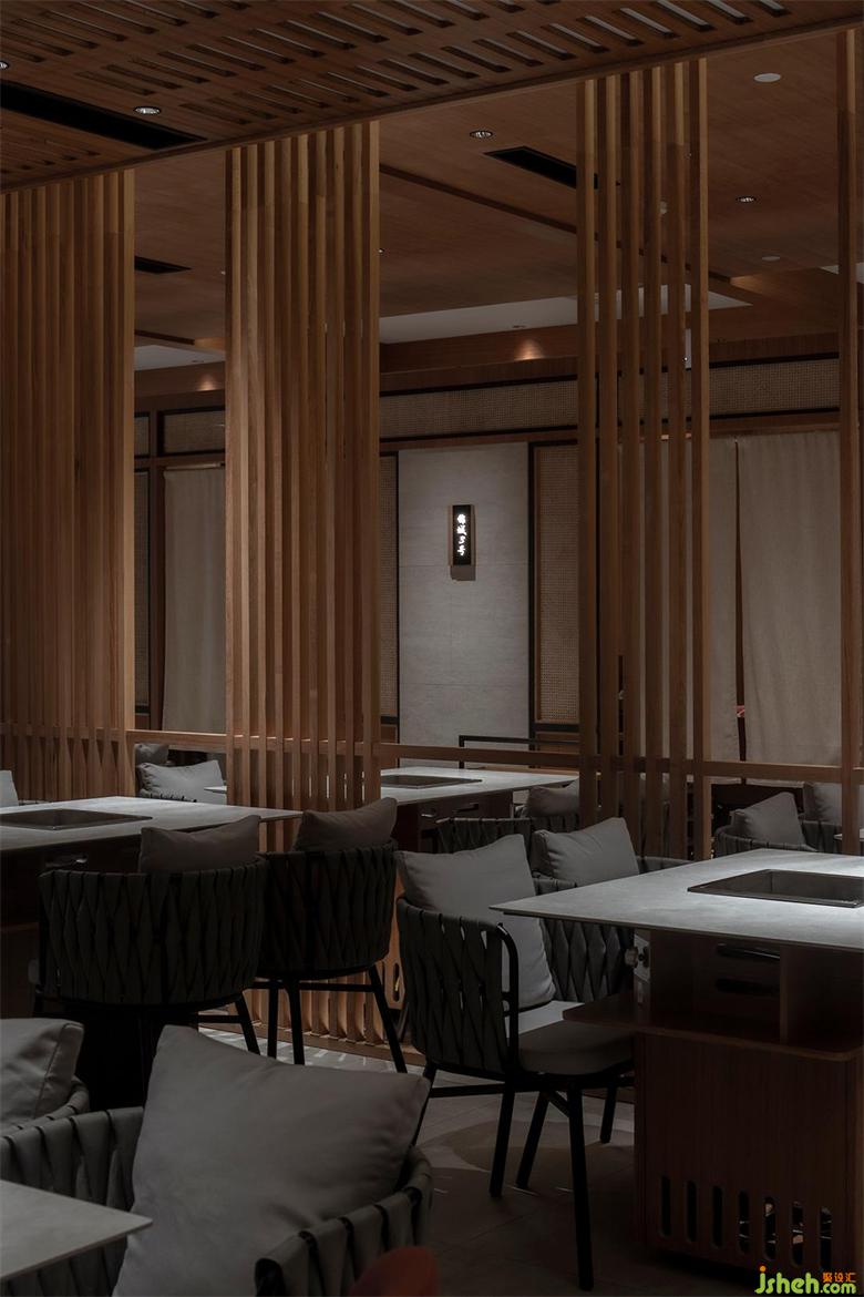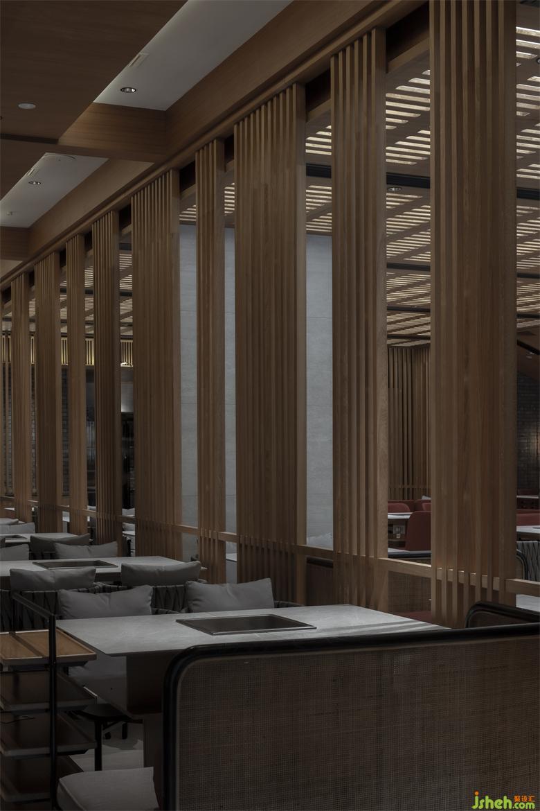 保留特色同時(shí)也要滿足推陳出新的目的,融入年輕新潮的氛圍。看似密集的木格柵,采用了「空間頂面透光」的手法,打造光與影的意境。成都餐廳設(shè)計(jì)格柵頂部透光方式將光線引入,漫散的光影,使空間層次渲染豐富?;疱仧狒[的氛圍中,融入光影動(dòng)勢(shì),使空間更加廣闊并帶來(lái)生機(jī)的新鮮感。