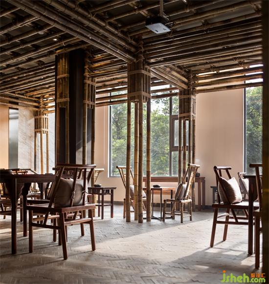 進入閑派,首先打造的是一個竹林茶室區(qū)。餐廳設(shè)計
