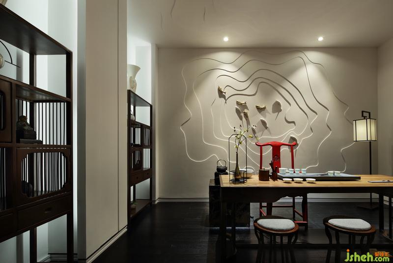 醞釀茶室背景時(shí),室內(nèi)設(shè)計(jì)師特意做出了浮雕水波紋的效果,仿佛一朵呼之欲出的玫瑰,與光臨VIP室的女賓們遙相呼應(yīng),譚女士本人也相當(dāng)滿意。工程進(jìn)展到一半時(shí),沈老師現(xiàn)場工地巡視指導(dǎo)時(shí)啟發(fā)室內(nèi)設(shè)計(jì)師們,背景可以酌情再修改一下,視覺跟寓意會更好。譚女士的先生姓于,所以對魚情有獨(dú)鐘,室內(nèi)設(shè)計(jì)師們在水波紋間輕輕點(diǎn)綴幾尾小魚兒,空間立刻活躍起來,女主見了甚是歡喜,并且跟如魚得水這個(gè)名字契合的渾然天成…