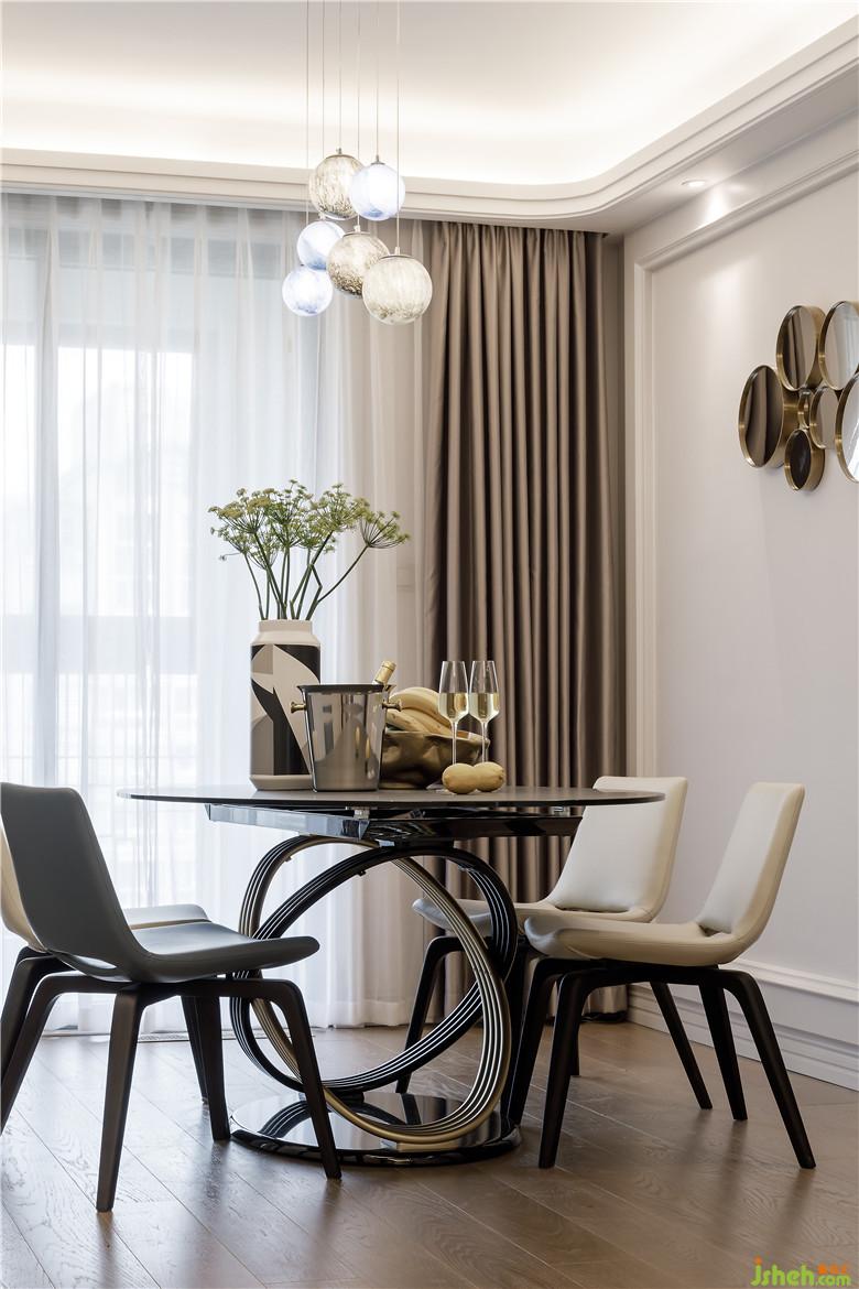 餐廳,科幻中帶著趣味,下掛的星球燈,橢圓形餐桌,部分鏡面的植入,宛如太空中神秘的宇宙,蘊藏著無窮的Power。