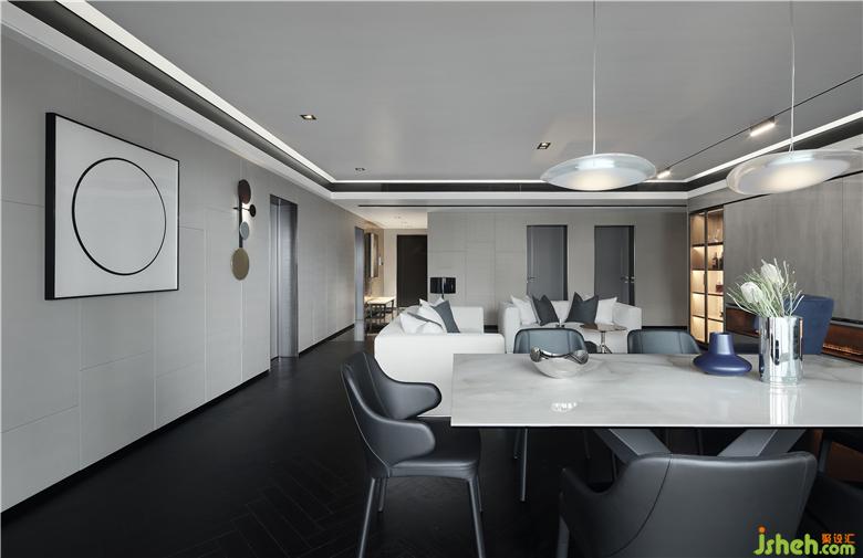 深色人字拼地板使整個客廳顯得神秘而又現(xiàn)代,