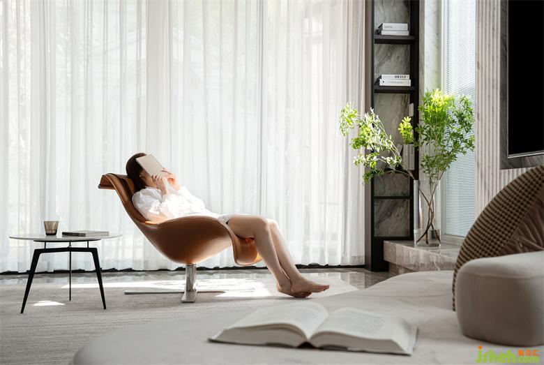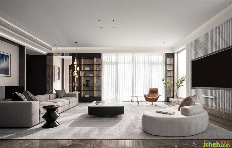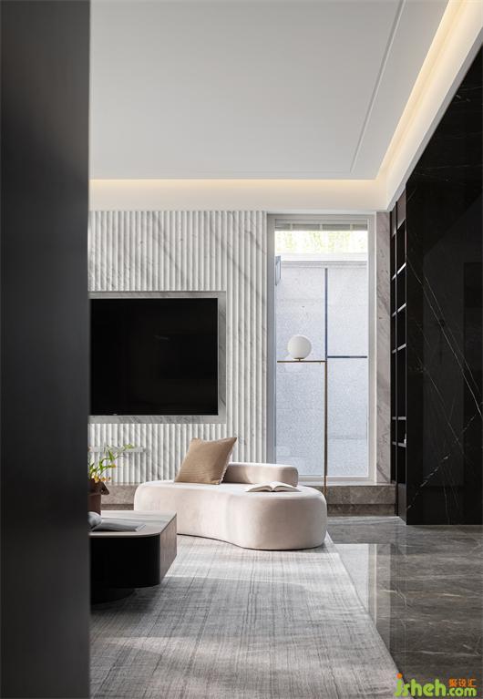 別墅裝飾設(shè)計(jì)師重置結(jié)構(gòu),于電視背景墻兩側(cè)最大程度引入自然光,令空間視覺通透流暢,功能布局更為完善,閑適生活,時(shí)時(shí)明亮。