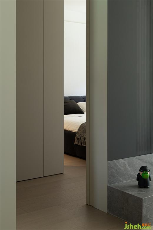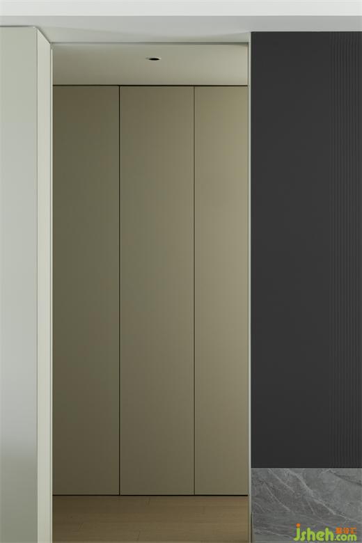 功能柜體以融合半隱姿態(tài)兼職隔斷與儲(chǔ)物