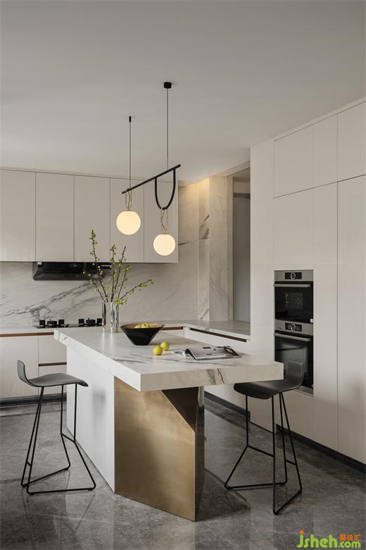 圓形餐桌方形島臺遙相呼應方與圓有機結合