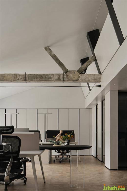 辦公室設(shè)計(jì)不同層次的肌理將我們的視線拉高聚焦